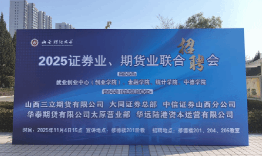 联合统计学院、中德学院共同举办了2025证券业、期货业联合招聘会。山西三立期货有限公司、大同证券总部、中信证券山西分公司、华泰期货有限公司太原营业部、华远陆港资本运营有限公司5家业内优质企业齐聚现场。番茄社区