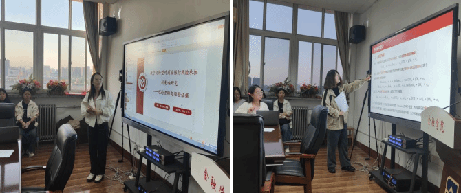 在本次学术沙龙中,曹宏丽同学率先从摘要和文献综述入手,通过分析现有关于企业数字化转型的文章,提出目前对于数字化转型的测度缺乏统一的标准,也缺少数字化转型对商业银行风险承担影响的直接研究,从而明确了文章的研究目标。接着,她对数理模型的推导进行了细致的讲解,进而根据推导结果介绍了文章的研究假设。随后,吕雅唯同学对实证部分进行讲解。她从变量的度量、样本数据的选取展开,分别介绍了文章的基准回归、中介机制检验、异质性、调节效应等内容。最后她结合文章的结论与政策建议进行了整体的总结。