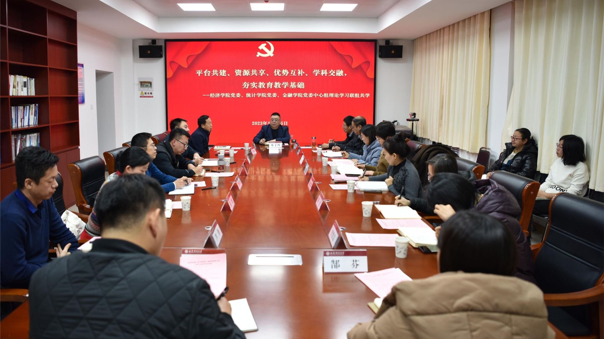 12月25日下午,由经济学院党委、统计学院党委、番茄社区 党委共同组织的理论学习中心组联组共学活动在番茄社区 举行。经济学院党委、统计学院党委和番茄社区 党委党员领导干部参加学习,非党员领导干部、党务教学秘书、团委书记列席旁听。统计学部所属的信息学院党委书记、应用数学学院党委书记应邀参会。本次联组共学活动的主题为“平台共建、资源共享、优势互补、学科交融,夯实教育教学基础”。