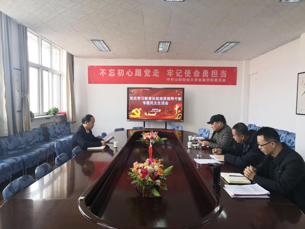 在修德楼10层会议室召开党史学习教育处级党员领导干部专题民主生活会,党委常委、副校长沈沛龙莅临指导。会议由学院党委书记郭东辉主持,全体处级党员领导干部参加会议。