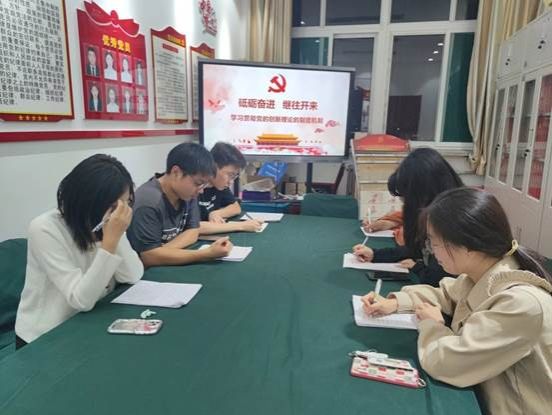 本科生第二党支部于修德楼十层党员活动室召开《砥砺奋进,继往开来——学习贯彻党的创新理论的制度机制》研讨会。