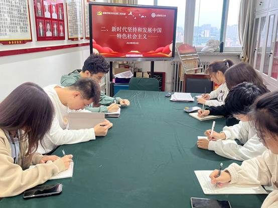 “坚定道路自信、理论自信、制度自信、文化自信”等十一个方面的内容的阐释凸显了“中国共产党领导是中国特色社会主义最本质的特征”和“新时代坚持和发展中国特色社会主义”的重要性,最后由支部成员崔梓轩做总结发言。