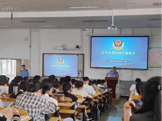专题讲座从国家安全、校园安全到治安安全、消防安全、交通网络安全等方面讲述了大学生常见的安全问题,重点阐述了电信诈骗、网络贷款、人身伤害等问题的特征、类型、危害、作案手法及防范措施。他告诫同学们不要被利益诱惑,要做到不信谣不传谣,养成边界意识,遵纪守法。讲座以案释法,以法论事,深入浅出、通俗易懂,引导同学们汲取典型案例的教训警示,教育同学们要牢固树立安全意识,增强法治观念,争做一名学法、懂法、守法、用法的优秀青年大学生。