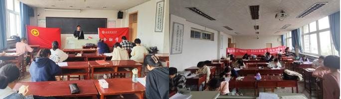 团委负责老师亲自巡考,考场秩序井然有序,考试气氛紧张而严肃,考风考纪良好。考试过程中,考生们严格遵守考试流程及规定,认真审题作答,将近期团课内容和自主学习内容整合归一展示在试卷上,展现了新时代共青团员丰富的知识储备和良好的精神风貌。