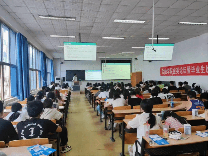 第十二届金英论坛暨毕业生经验交流会。本次交流会特邀2020级14名优秀毕业生代表、2021级1名优秀对外交流生代表,学院党委副书记、全体辅导员、202级、2022级、2023级本科生1000余人参加。