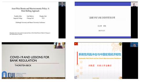 The meeting focused on the theme of "financial regulation and financial stability". In the keynote speech stage, Professor Franklin Allen of Imperial College London, Professor Wu Wenfeng of Shanghai Jiao Tong University, Professor Thorsten Beck of European University College, Professor Liu Xiaoxing of Southeast University, Professor Jonathan Batten of Royal Melbourne Institute of Technology, Professor Sui Cong of Dalian Maritime University, Professor Charlie Cai of University of Liverpool and Associate professor Wang Xiaoting of Shanxi University of Finance and Economics made in-depth analysis on potential policy responses to skyrocketing asset prices and bubbles, financial decentralization and local government debt governance, experience of banking regulators' response to COVID-19 crisis, systemic financial risk shocks and China's macroeconomic resilience, financial insider trading and market manipulation, performance of different market participants under the crisis, the impact of economic uncertainty exposure (EUE) and cross-sectional returns: mispricing and ambiguity premium and the balance sheet analysis of macroeconomic departments and the evaluation of China's financial stability.