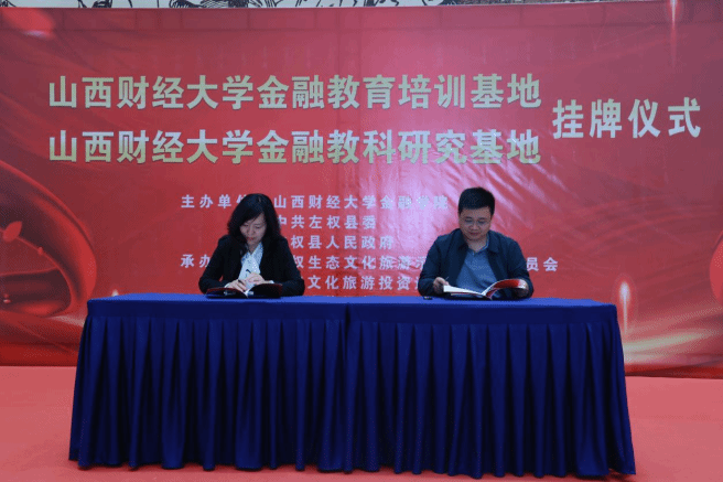 “金融教育培训基地”、“金融教科研究基地”在山西左权挂牌。左权县委副书记、县长郭丰慧,县委常委、政法委书记曹峰云,县委常委、副县长任睿,左权文化旅游投资运营有限公司(简称左旅公司)代表、番茄社区