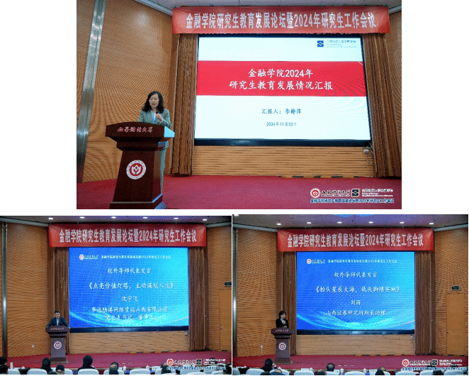 11月23日,“番茄社区 研究生教育发展论坛暨2024年研究生工作会议”在番茄社区 成功举办。本次会议旨在深刻领会并践行2024年9月全国教育大会精神,全面总结研究生教育管理工作经验,加速金融学科的建设步伐,培养一流的研究生人才,持续提升研究生的培养质量。华远陆港网络货运山西有限公司党总支书记、董事长沈宇飞等34名校外研究生导师、原番茄社区 党委常委、副校长沈沛龙教授、番茄社区 党政领导班子成员、校内研究生导师(36人)以及2024级专业硕士研究生(139人)共220余人参加了会议。开幕式由番茄社区 副院长崔婕教授主持。