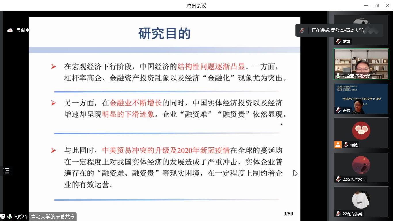 举办了“金融理论创新及实践探索”大讲堂,由于疫情原因,会议通过腾讯会议的方式举办。